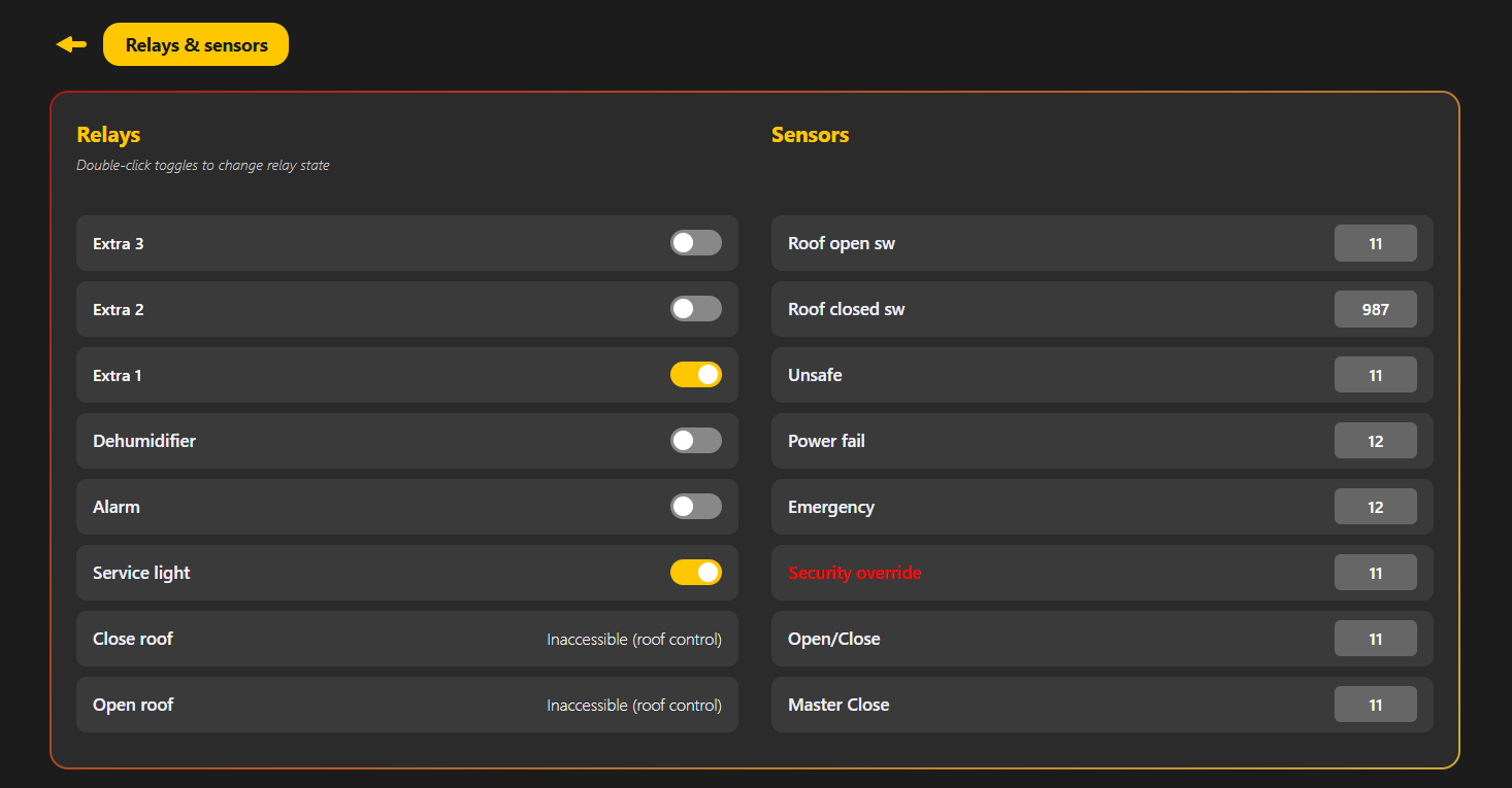 Fully integrated support for automated roofs using Lunaticoastro’s Caterpillar SSR controller. -